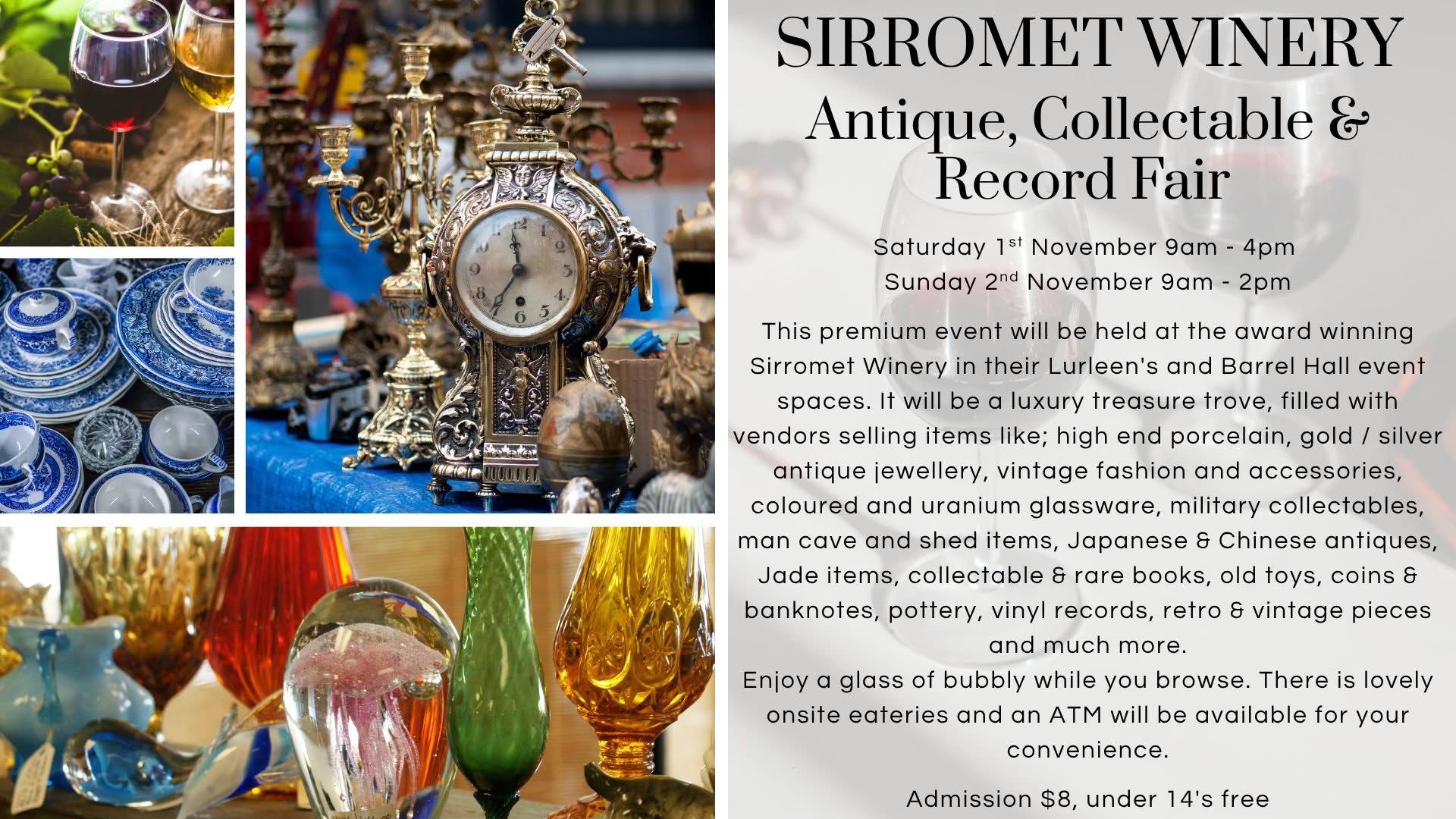 Sirromet Winery – Antique, Collectable & Record Fair 1st & 2nd Nov. Pre-purchase your tickets here.